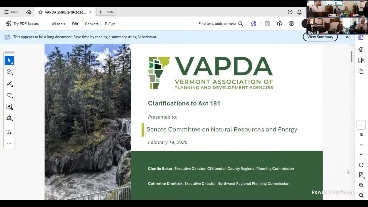 Regional planning commissioners told the Natural Resources & Energy committee Feb. 19 that modest statutory edits to Act 181 could reduce municipal frustration, speed housing-ready mapping and let towns more easily access designation incentives; they asked for a faster amendment process, clearer definitions and short extensions for expiring plans.