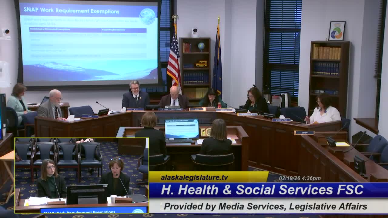 Division of Public Assistance Director Deb Etheridge told lawmakers Alaska secured a SNAP good-faith waiver through Oct. 31, 2026, will not immediately apply the law’s narrower exemptions, and warned a federal administrative cost-share shift could raise Alaska’s FY cost roughly $10.7 million annually beginning Oct. 2027.