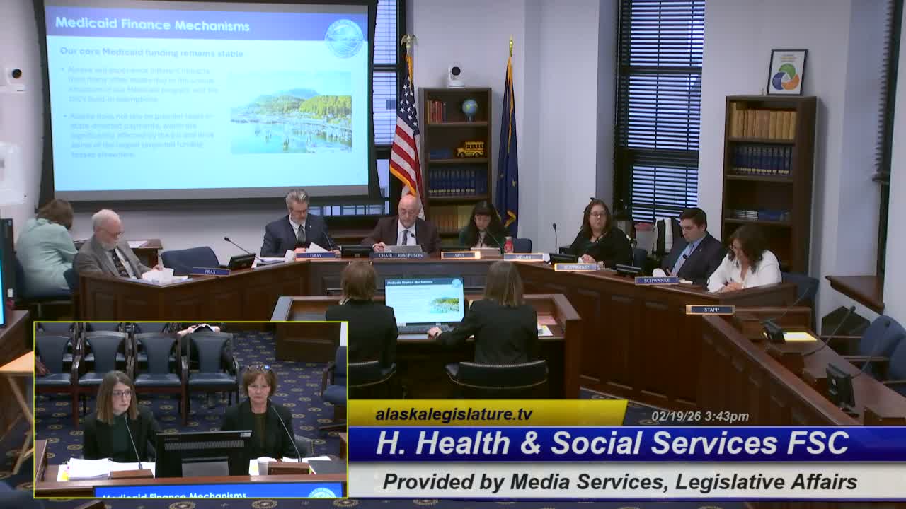Alaska Department of Health officials told the House Finance Health Subcommittee on Feb. 19 that federal HR 1 will require most adults covered by Medicaid expansion to complete the equivalent of 80 hours per month of work or qualifying activities beginning Jan. 1, 2027. Deputy Commissioner Emily Ricci said final federal rules are expected in June 2026 and that the state must begin communications to impacted individuals by September 2026.