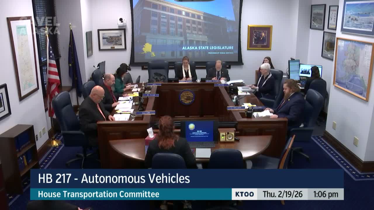 The Alaska House Transportation Committee reintroduced HB 217, which would require a human safety operator in autonomous vehicles used for interstate commerce or commercial transport; labor representatives supported the measure for safety and job protection, while industry groups warned it would stifle AV deployment and asked for more coordination on federal standards and liability rules.