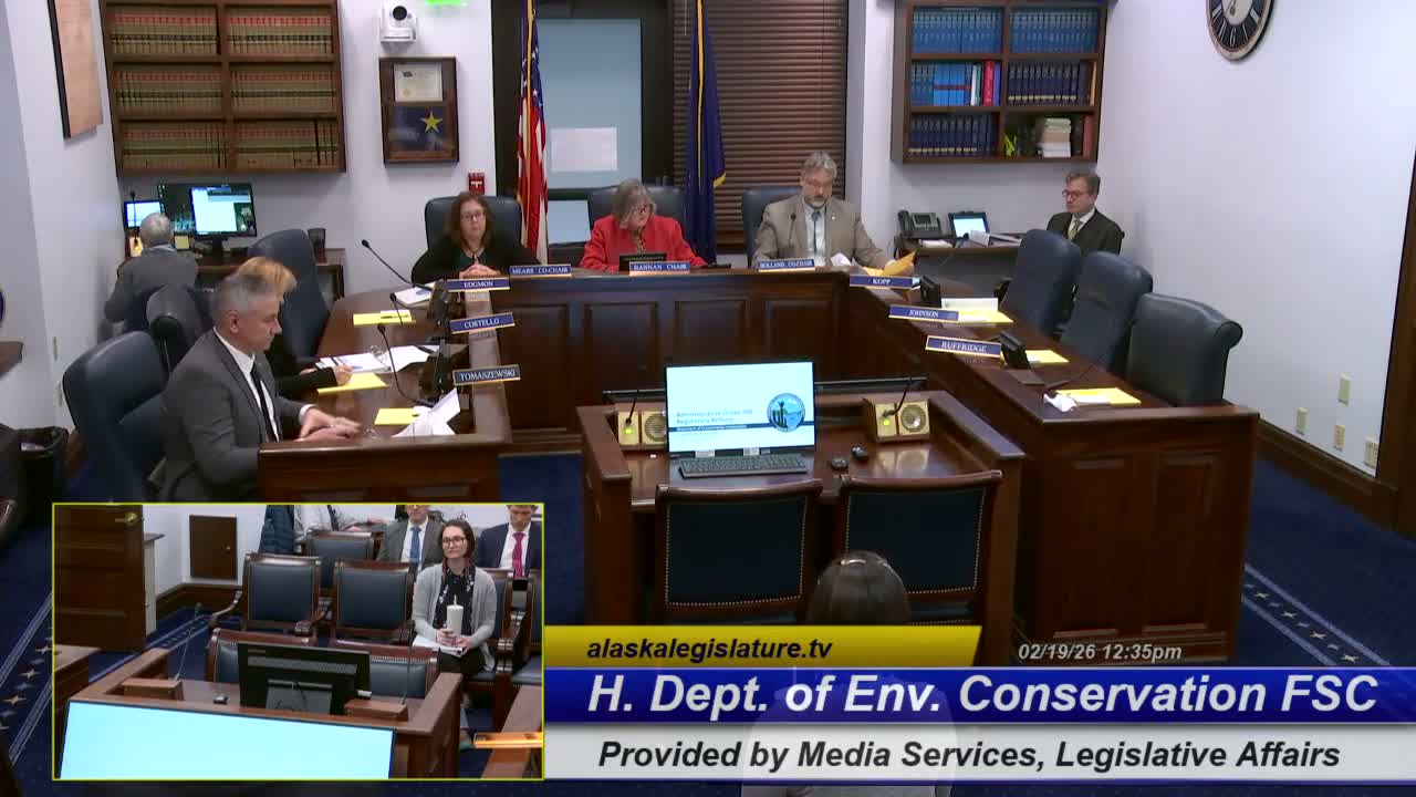 Deputy Commissioner Crystal Keeneman told a House Finance subcommittee Feb. 19 that the Department of Environmental Conservation has identified 40 regulatory packages and roughly 13,000 discretionary requirements as part of AO 360, aiming for a 15% reduction by 2026 and 25% by 2027 while maintaining environmental protections.