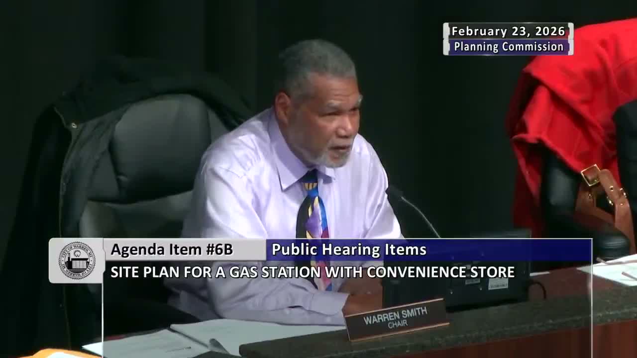 A contested plan for a Speedway gas station and convenience store at the northeast corner of Mound Road and 13 Mile Road drew hours of testimony and was postponed after the Warren Planning Commission failed to reach the five‑vote majority needed for approval.