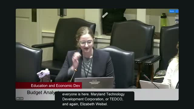 Officials from the Maryland Technology Development Corporation (TEDCO) and affiliated programs urged the subcommittee to maintain funding for several innovation programs that DLS proposed to scale back in the FY27 allowance.