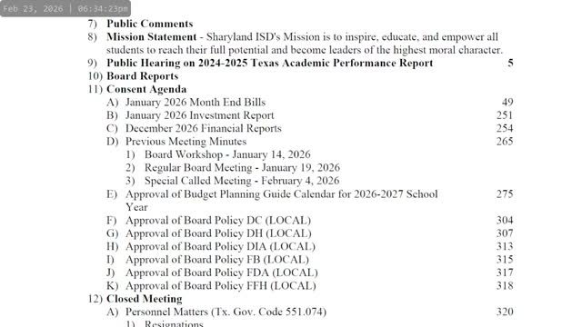 What's next: Ms. Jennifer said the 2024'25 presentation and supporting documents remain available on the Sharyland ISD website and that the district will report the 2024'25 accreditation status later this spring.