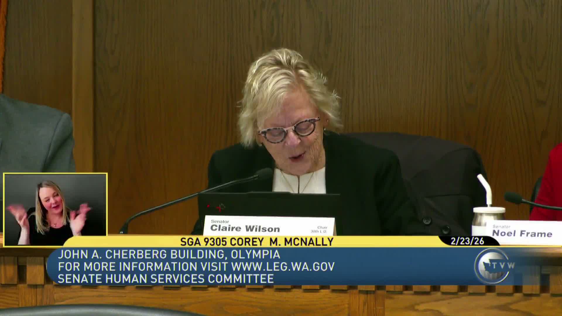 The Senate Human Services Committee held a gubernatorial appointment hearing on Feb. 23 for Corey McNally to continue serving on the Indeterminate Sentence Review Board (ISRB).