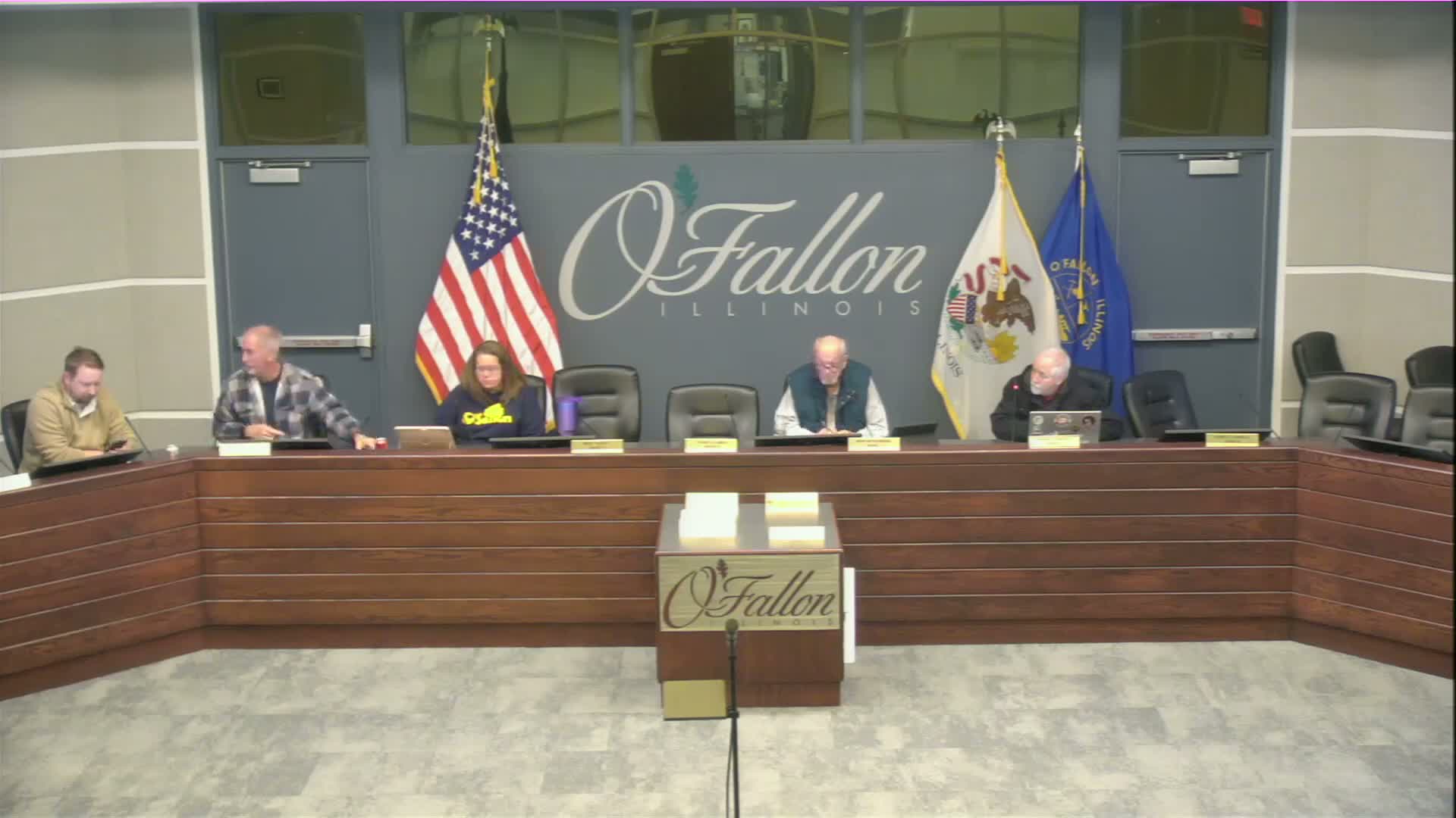 City staff presented a recommendation to modernize O'Fallon's water-meter reading system by replacing aging encoder-receiver-transmitter (ERT) hardware and registers with Badger Meter cellular endpoints and the Beacon SaaS / EyeOnWater customer portal.