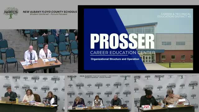 Kyle, Prosser's CTE director, told the New Albany'Floyd County School Board that Prosser remains a central regional workforce pipeline serving 16 sending districts across six counties and a range of employers, and that the center is preparing program and staffing changes to align with the state'issued Indiana diploma revisions.