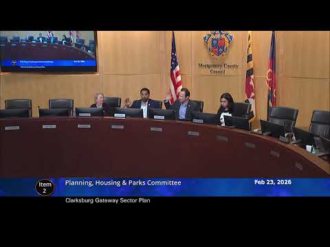 The Planning, Housing and Parks Committee reviewed neighborhood recommendations and implementation edits for the Clarksburg Gateway Sector Plan — including zoning shifts, transportation and environmental clarifications — and voted to forward the amended plan to the full council for final approval.