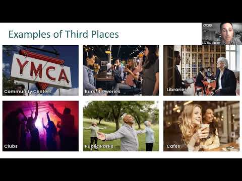 "So third place, yeah, your home is your first place. Your work or your school is your second place. And the third place is sort of like where you go to hang out to connect with other people that's obviously not your home or your work," Kyle said during the presentation, describing cafes, parks, libraries and community centers as typical examples.