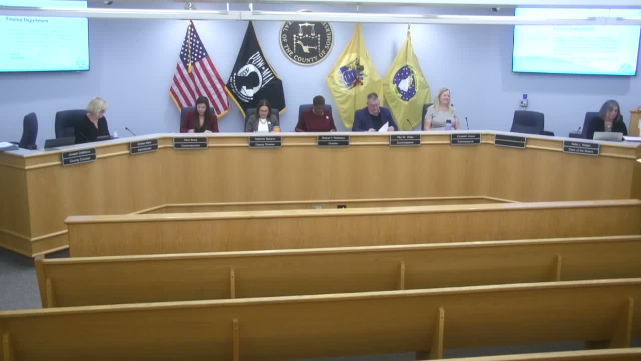 Somerset County commissioners voted to give ordinance 25-2299 a first reading and scheduled a public hearing for Dec. 9 at 6 p.m., after an on-the-record reading that described an appropriation for improvements at TD Bank Ballpark and the authorization of bonds.