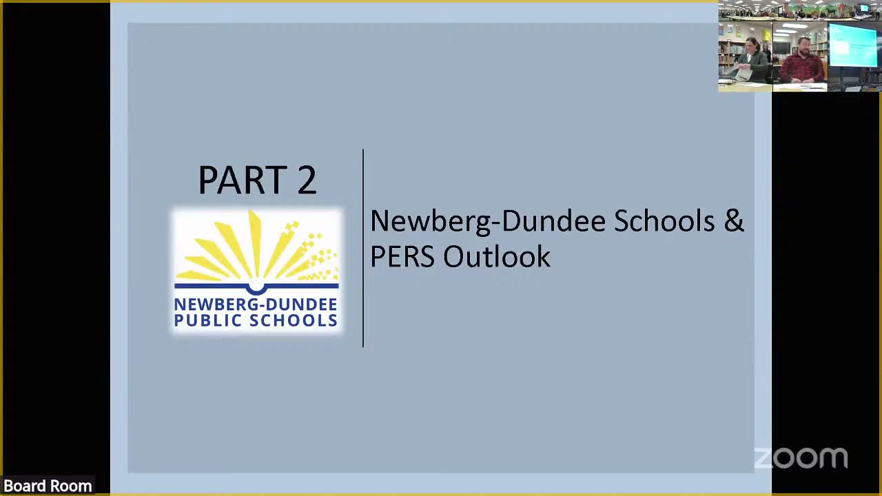 Newberg SD 29J finance staff warned the school board that state pension costs driven by PERS (Oregon Public Employees Retirement System) pose a material budget risk when the district’s pension obligation bond (POB) and temporary legislative relief expire.