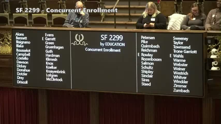 Senate File 22‑99, sponsored by Senator Green, passed the Senate after an extended floor debate that produced sharp arguments both for local control and against imposing fees on families whose children fail concurrent‑enrollment classes.