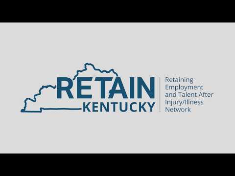 RETAIN, a federally funded DOL program, aims to coordinate health and employment services so people with work-limiting injuries or illnesses can stay at work. Presenters highlighted that only 38% of working-age Kentuckians with disabilities are employed and described services including peer mentoring.