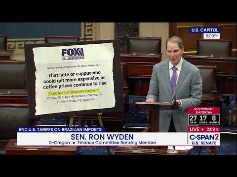 The speaker’s claims draw on a mix of cited sources and assertions in the speech. The transcript attributes the coffee and beef figures to Fox News and the family-cost estimate to the Yale Budget Lab; those sources are not reproduced or corroborated elsewhere in the transcript. The transcript does not include a response from the administration or independent verification of the speaker’s allegations about motive or convictions in Brazil.