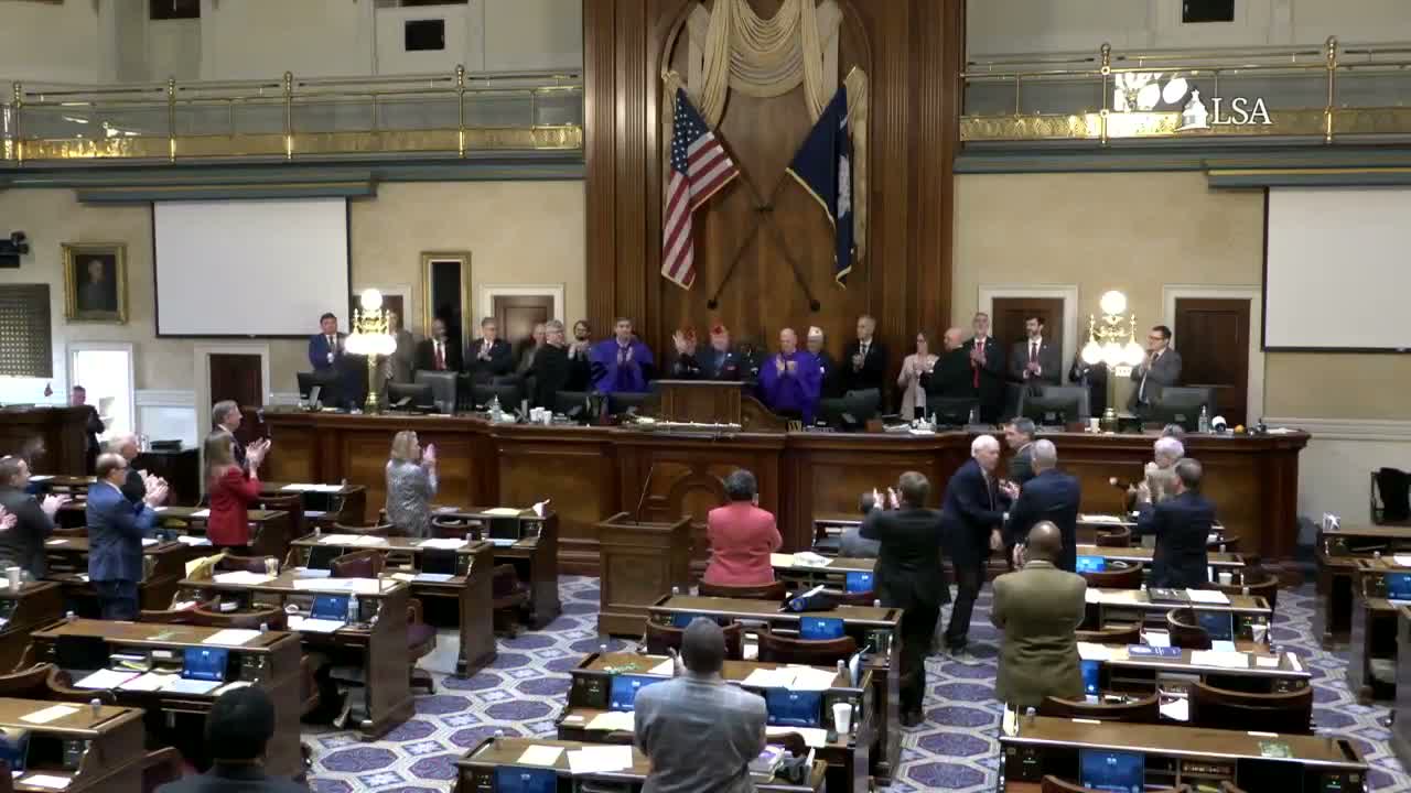 Near the close of his remarks, Wiley presented the American Legion Department of South Carolina’s Special Legislative Award for 2026 to Senator Jeff Zell and Representative Cody Mitchell, calling them ‘‘veterans champions’’ and inviting them to the platform to accept the awards dated Feb. 25, 2026. Both were thanked by the presiding officer and the commander before the joint assembly concluded.