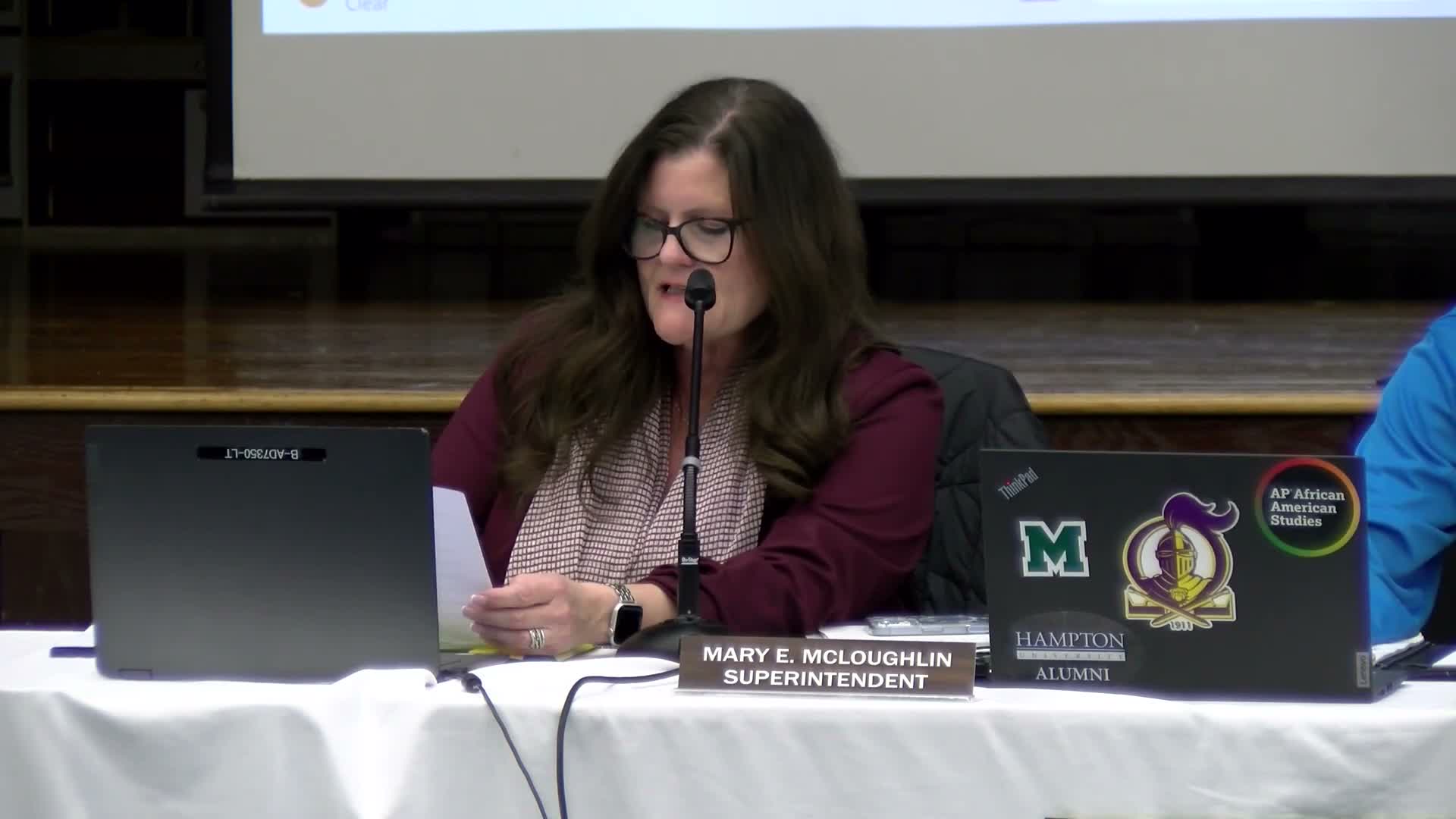 The presentation showcased long service, curriculum leadership, and student supports across the district; the administration said honorees were chosen for classroom impact, leadership roles and contributions to school climate. The board moved on after a short break to a legal training for members.
