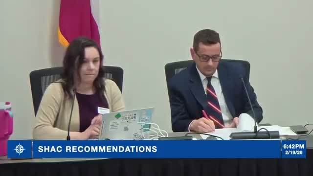 SHAC presenters emphasized the curriculum’s accessibility, its focus on consent, boundaries, cyber safety and leadership for healthy relationships, and the district’s plan to provide family information and facilitator access codes for teachers and families. The board received the recommendation and discussion focused on process questions (how SHAC process differs from standard instructional material adoption, parental engagement and student involvement). Trustees were told the board will be asked to adopt the resource at a future meeting after final adjustments and additional feedback.