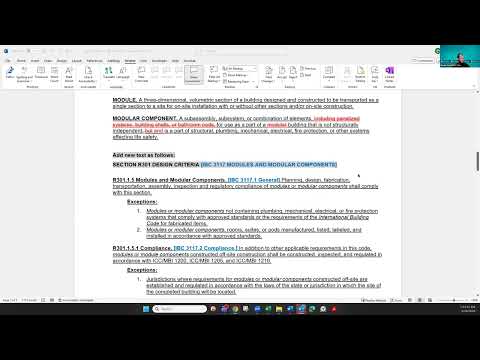 The petition, introduced by proponent Todd Batherthor, sought to add definitions and a compliance pathway allowing jurisdictions to accept third-party code reports and certifying-agency documentation for modular assemblies. Batherthor said the change was intended to create "a compliance pathway" so manufacturers and jurisdictions would have more certainty when approving off-site-built wall and floor assemblies. "Modular does not mean always volumetric," he said, arguing the proposal was meant to address assemblies that fall outside volumetric or manufactured-home programs.