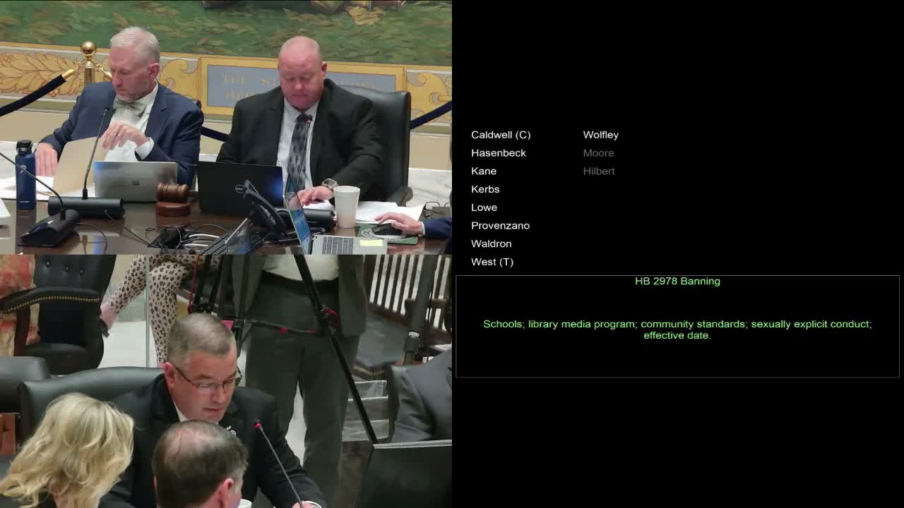 House Bill 2978, advanced by the Education Oversight Committee, would ban library materials that depict or describe sexually explicit contact in public school libraries. Sponsors say the measure protects minors; several members asked for clearer definitions and exemptions for instructional materials and survivor education.