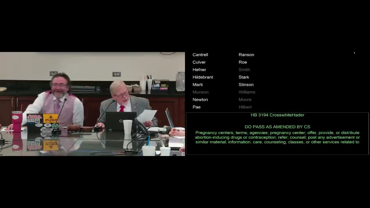 Several bills were discussed only briefly and passed without debate; others produced substantive questions, as noted in separate articles about HB 31,94 (pregnancy resource centers), HB 33,44 (foster care), and the untimely PCS on edible labeling. Committee members signaled further drafting and stakeholder meetings on several items before possible floor consideration.