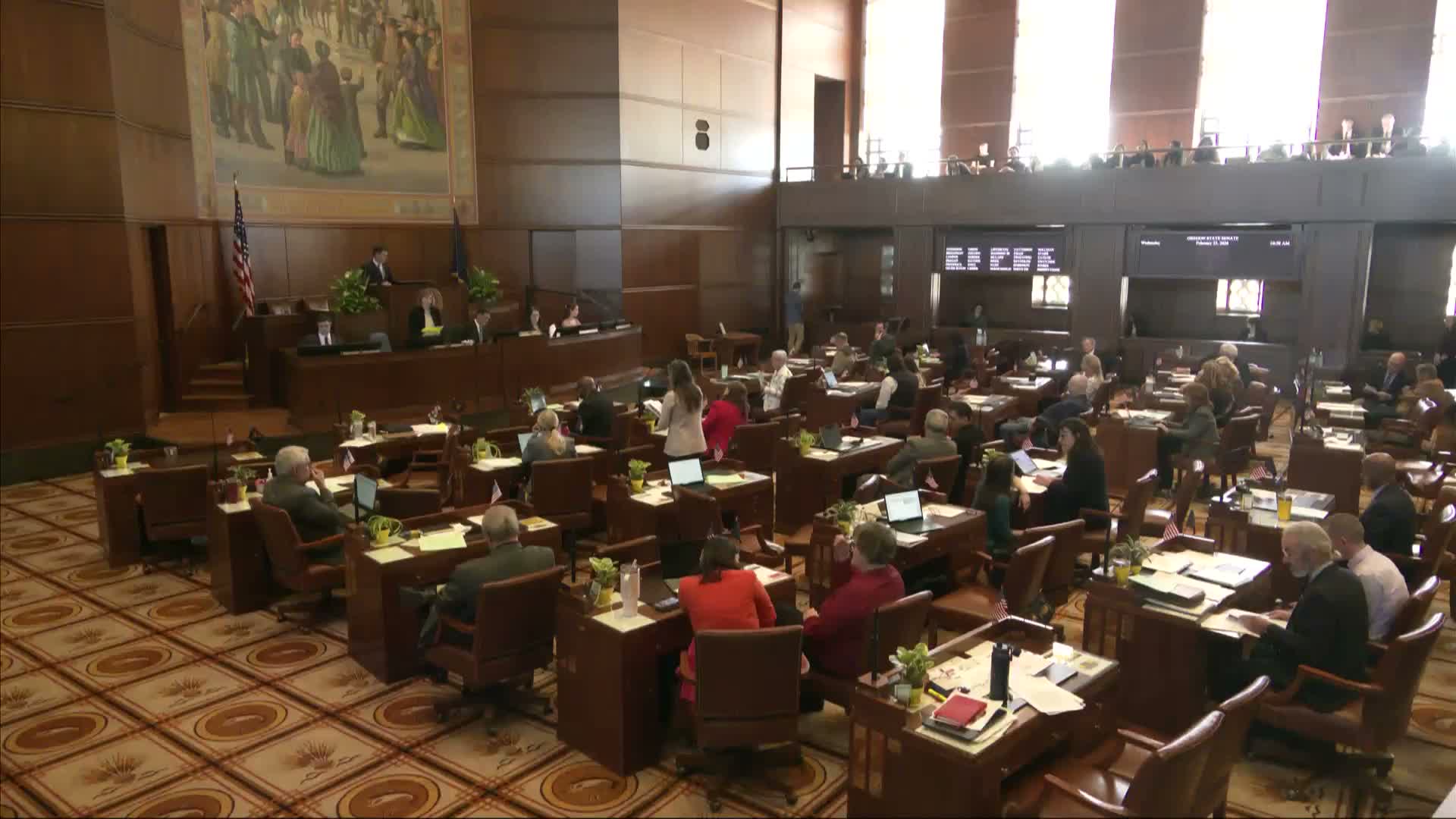 The Oregon State Senate met in floor session on Feb. 25 and approved a series of third‑reading measures after a unanimous‑consent motion to suspend section‑by‑section reading.
