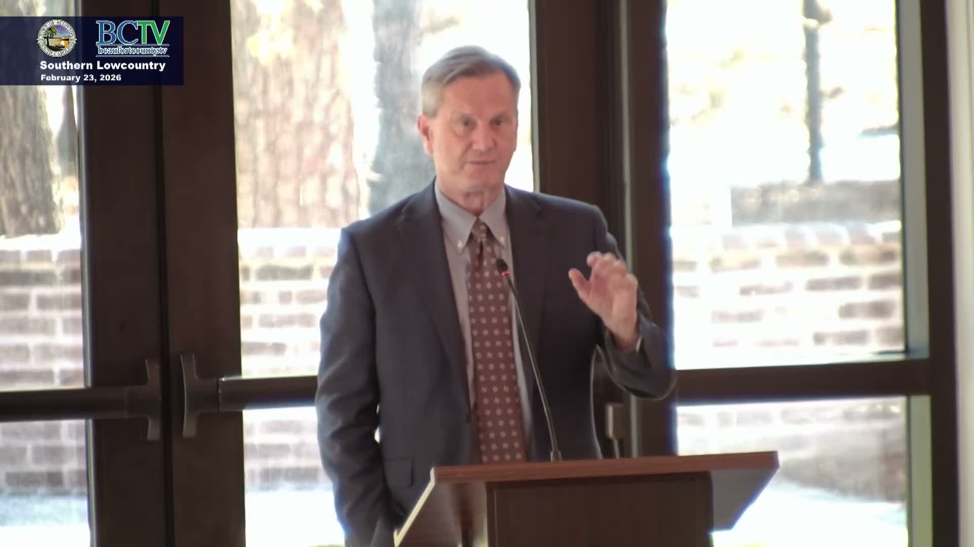 Sen. Tom Davis said he is pursuing a $2,000,000 budget proviso for the South Carolina Department of Transportation to study a comprehensive waterborne transportation system for Beaufort and Jasper counties and to produce a one‑year blueprint for capital needs, landing sites and last‑mile delivery. "I give a one‑year period for them to do this study because I want that to be a blueprint for capital investments," he said.