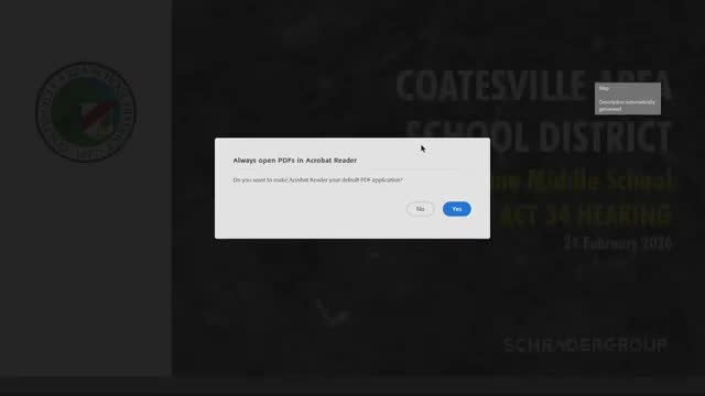 Doctor Rybarczyk opened an Act 34 hearing Feb. 24 to present the Coatesville Area School District’s proposal to build a new North Brandywine Middle School and to solicit public comment.