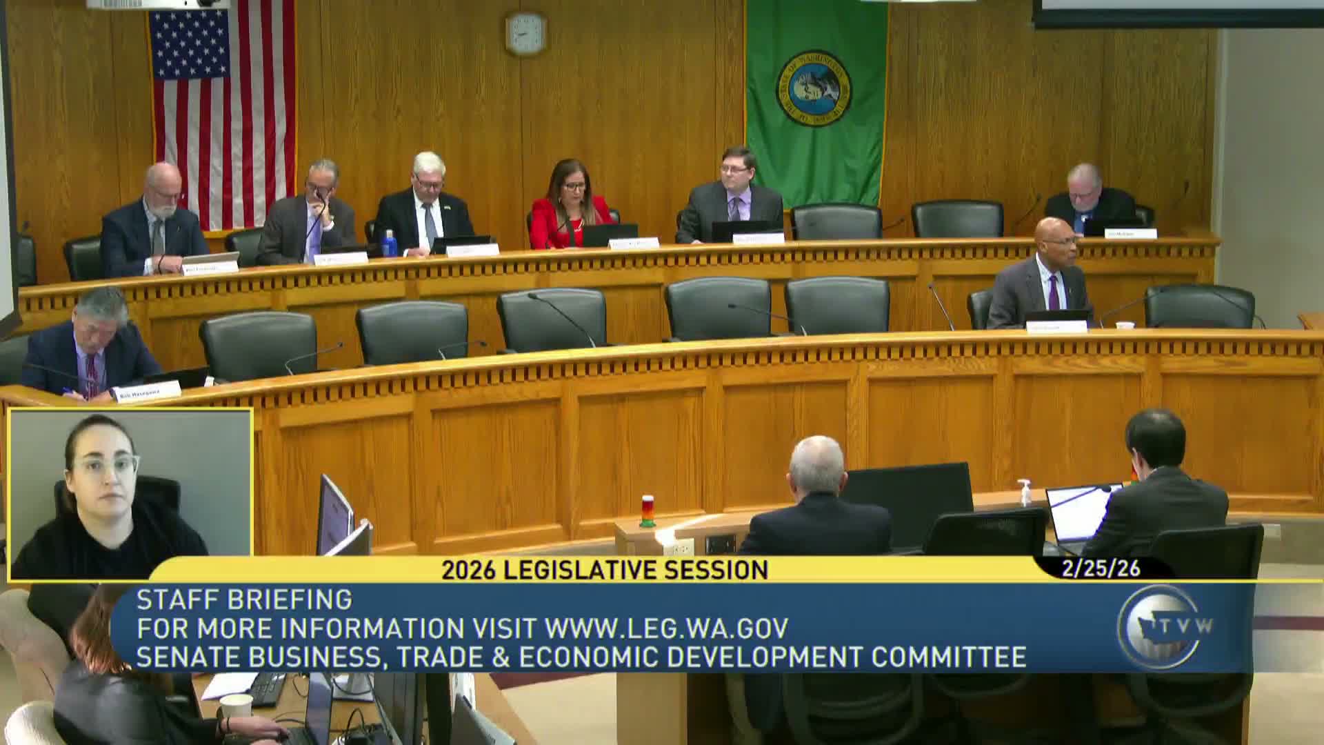 The Senate Business, Trade and Economic Development Committee advanced Engrossed Substitute House Bill 2274 on Feb. 25, a measure about commercial electronic mail that, according to staff, would require the center to have knowledge of falsity and reduce statutory damages cited in the transcript from 500 to 100; the committee gave the bill a due-pass recommendation to the rules committee by voice vote, passed 'subject to signatures.'