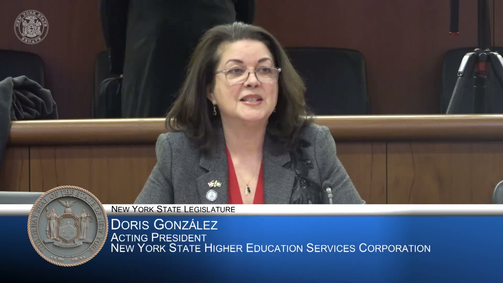 Acting HESC President Doris Gonzalez briefed lawmakers on student aid changes and the agencys modernization plan. Gonzalez said HESC distributed roughly $935 million in financial aid last academic year, serving nearly 294,000 students across more than 30 grant, scholarship and loan-forgiveness programs.
