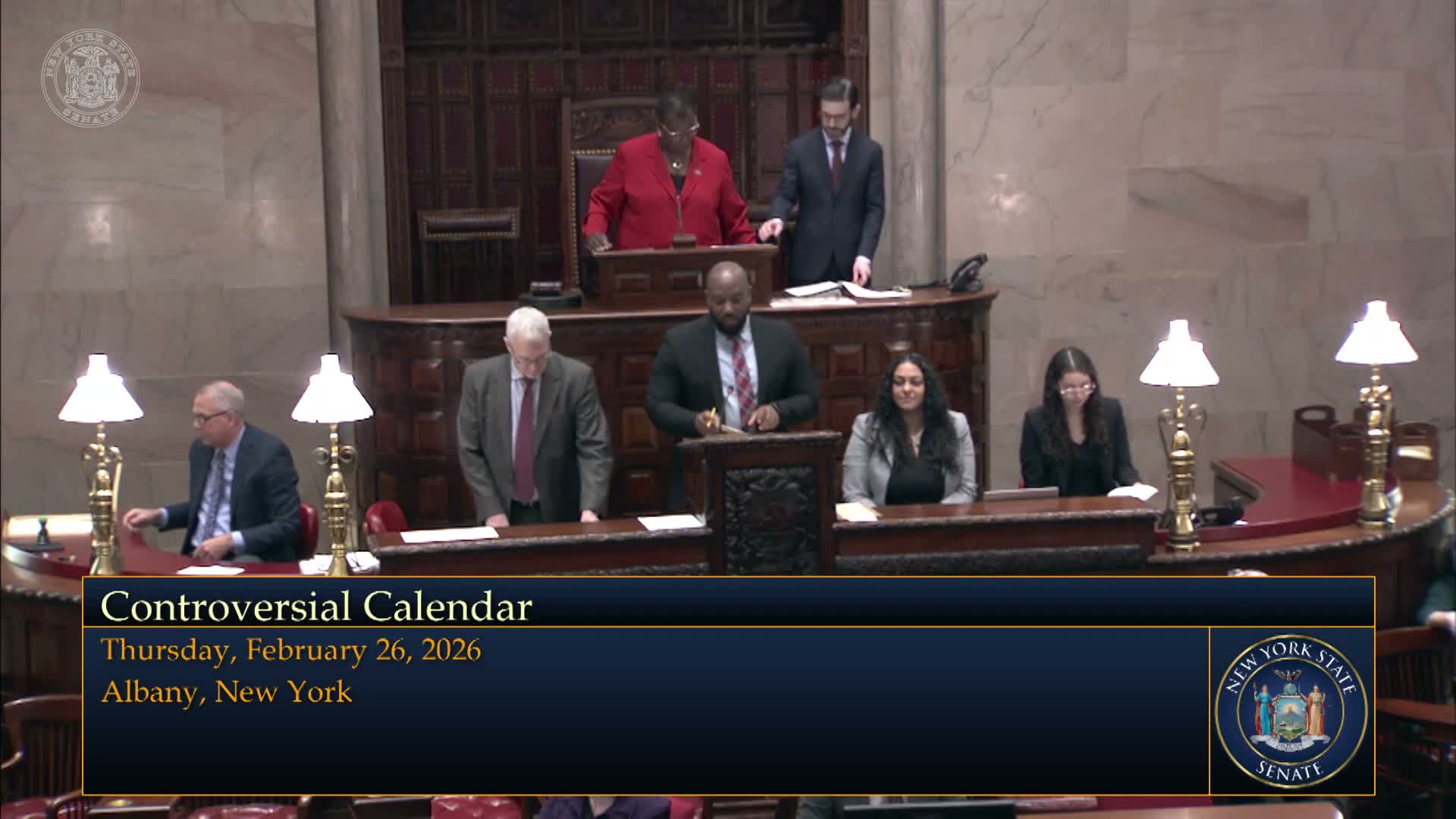 After an extended floor debate about tree-cutting, royalties and DEC oversight, the State Senate voted to advance a May-sponsored amendment to the Environmental Conservation Law to permit certain green-energy transmission uses on state reforestation areas; the measure was restored to the noncontroversial calendar and passed.