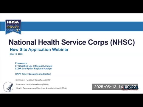 A Health Resources and Services Administration webinar on the National Health Service Corps site application outlined who can apply, what documents sites must upload, and how to avoid common application errors. Presenters from the Bureau of Health Workforce's Division of Regional Operations — Captain Tracy Galante (moderator), Lieutenant Christina Lee, and Lieutenant Commander Lee Bridal — guided attendees through account setup, eligibility rules and required evidence, and said the application cycle is open May 6 through June 17 with a live Q&A scheduled for May 21.