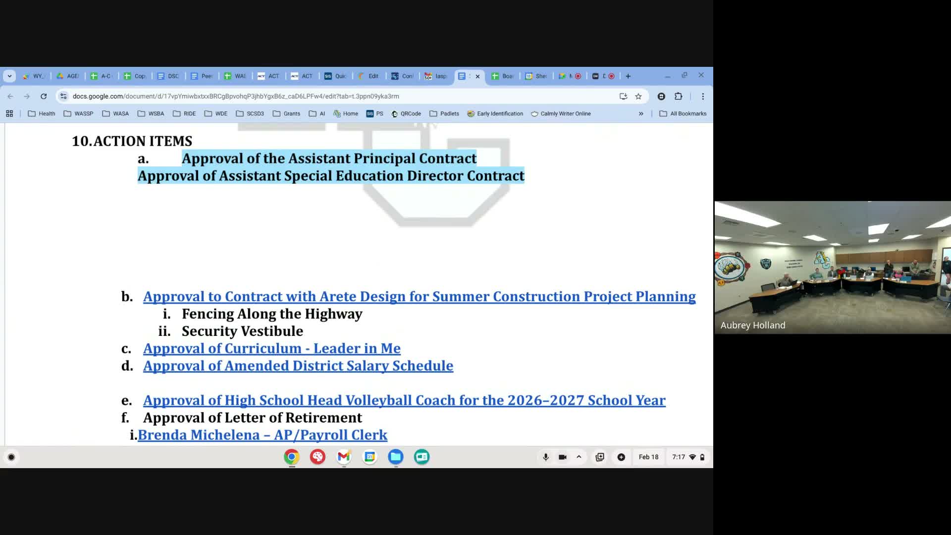 The Sheridan County School District #3 board approved a series of personnel and planning actions at its regular meeting, approving an assistant principal contract, the assistant special education director’s contract, a planning contract with a design firm for summer construction, a single-position pay increase, hiring of a head volleyball coach, and accepting a staff retirement.