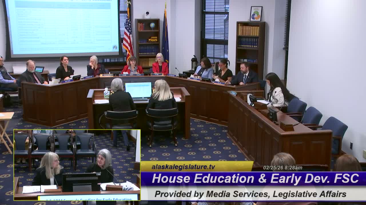 The Alaska Department of Education and Early Development told the House Finance education subcommittee on Feb. 25 that a statutory cap on 0.5 ADM early-learning funding for fiscal year 2026 required the department to prioritize awards by need and that several districts consequently saw funding reduced or removed.