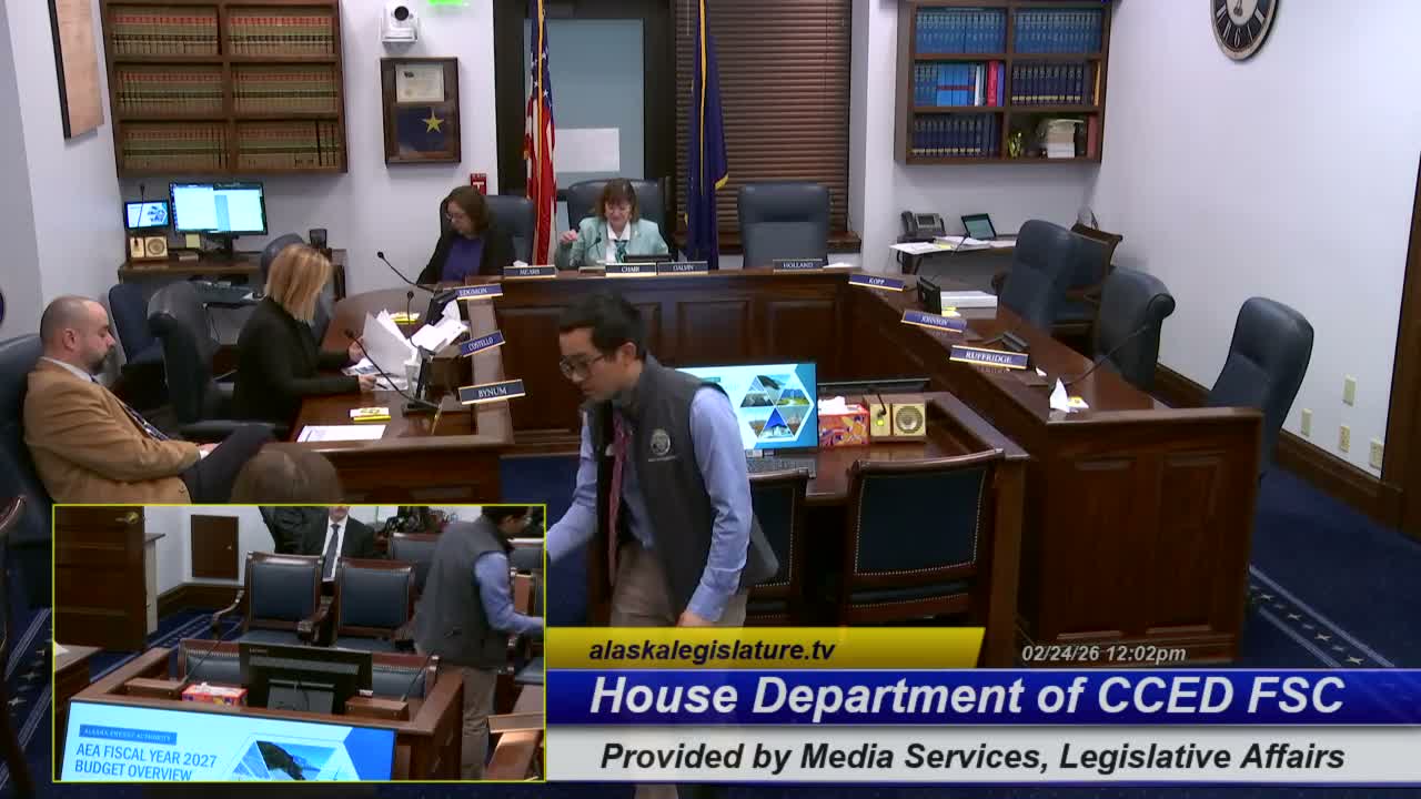 At a Feb. 24 House Finance DCCED subcommittee hearing, AEA Director Curtis Thayer outlined FY27 requests tied to the Rail Belt Transmission Organization, warned of a potential $3.4 million Power Cost Equalization shortfall, and described financing gaps for Bradley Lake and the Cook Inlet PowerLink.