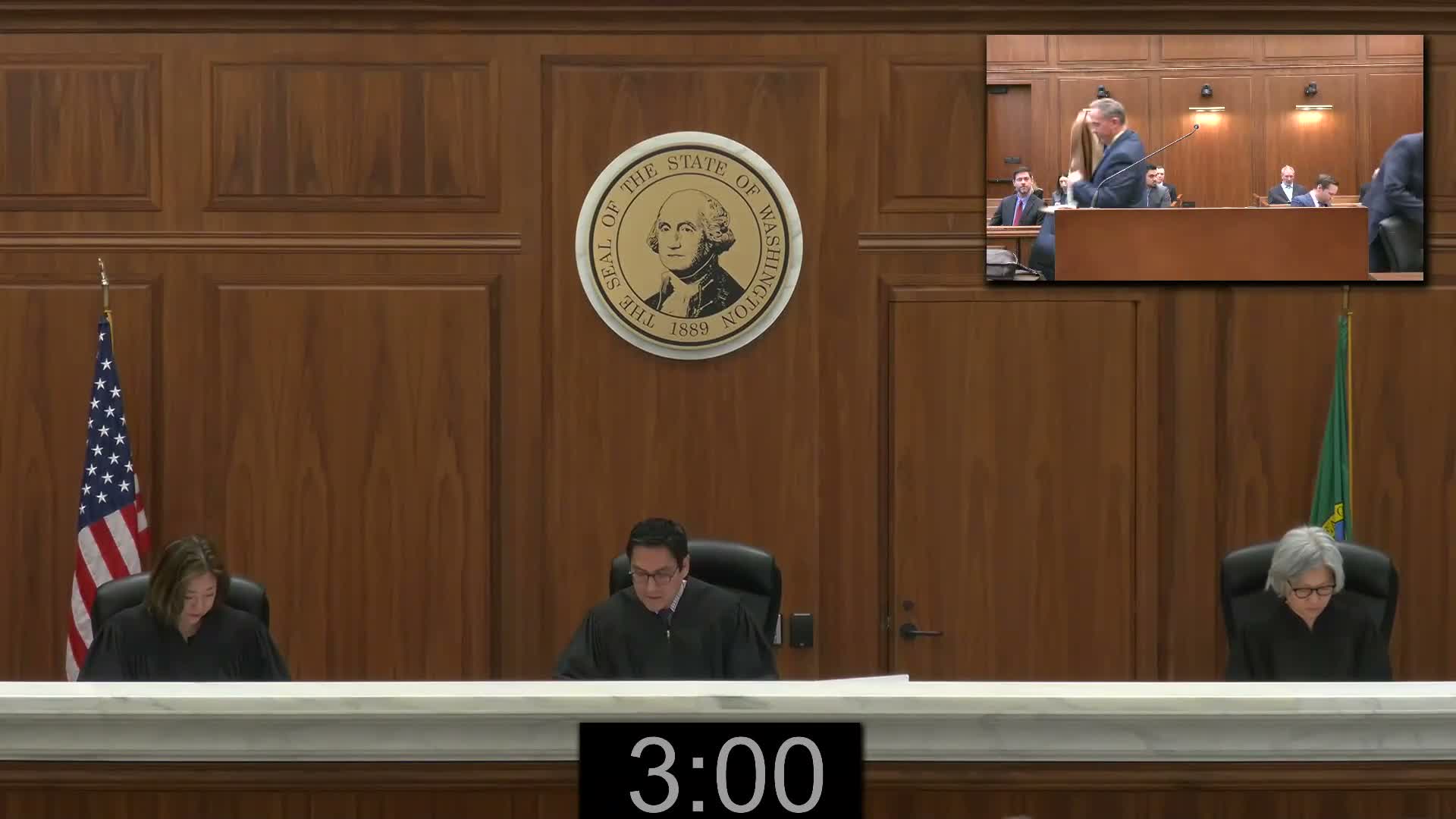 Anne Summers, representing the state of Washington, replied that the record contained evidence supporting the instruction. "The defendant's belligerent refusal to leave the bar ... entitled the state to a first aggressor instruction," Summers said, noting video and witness testimony the state said showed the defendant refusing to move toward the door and then forcefully shoving a bartender.
