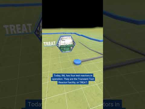 "Here at INL, our nuclear reactors are used for research," the presenter said, adding that the reactors test fuels and materials "that commercial reactors will use down the road." The presenter asked, "So what's the difference between a test reactor and a commercial [reactor]?" and then answered the question.