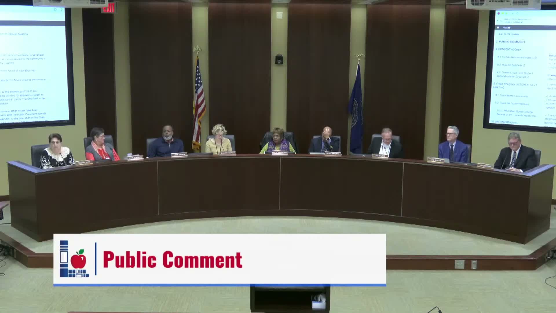 Other public commenters at the meeting included a student who asked that participation in high school sports be considered for physical education credit; that request was recorded by the board separately during public comment.