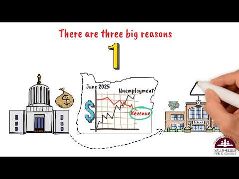 The presenter said the first cause is a softer Oregon economy — "Oregon's economy is less healthy than it was in June 2025," with higher unemployment and lower state revenue that reduce state support for schools. That decline, the presenter said, has led the state to begin "planning for a possible midyear reduction," a step not taken since the last recession.
