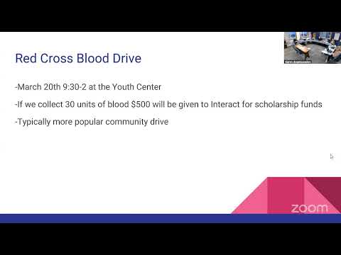 Officials said the American Red Cross drive is scheduled for March 20 and that 22 of 38 slots had been filled at the time of the meeting. The district’s presenter reported that if the drive collects 30 units, the Red Cross will award $500 in scholarships to Interact.