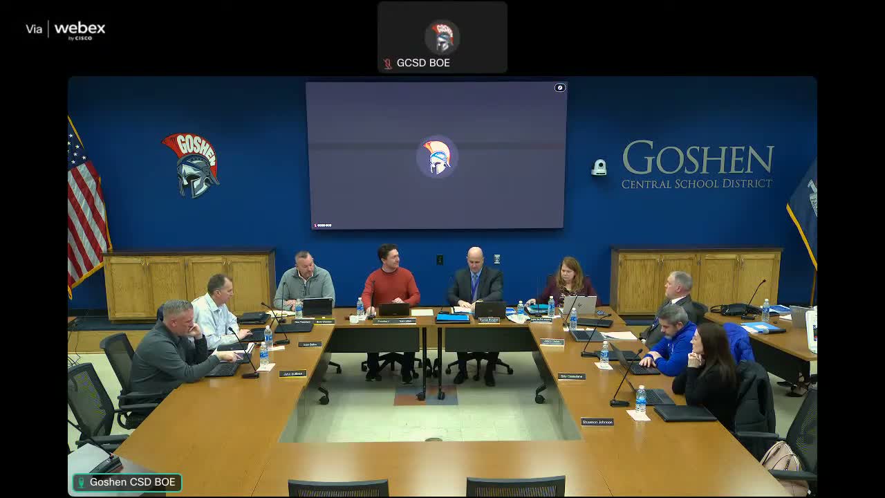 He said the board’s five goals include recruiting a full‑time superintendent, developing a district‑wide facilities plan and capital‑project timeline, reviewing pupil‑personnel services (PPS) initiatives, expanding internal and external communications, and producing a fiscally responsible budget for 2026–27. He told the board the facilities committee aims to present a capital‑project proposal for a public vote in December 2026 and described the program list as a mix of visible and behind‑the‑scenes work—roofing, boilers, asbestos abatement, safety improvements and athletic field upgrades among them.
