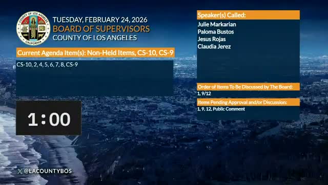 A broad set of community organizations and industry groups spoke during public comment on Feb. 24 about whether Los Angeles County should continue emergency price‑gouging restrictions enacted after recent wildfires. The public comment period preceding the hearing on item 1 featured multiple callers and in‑person speakers who sharply disagreed on the need for continuing restrictions.