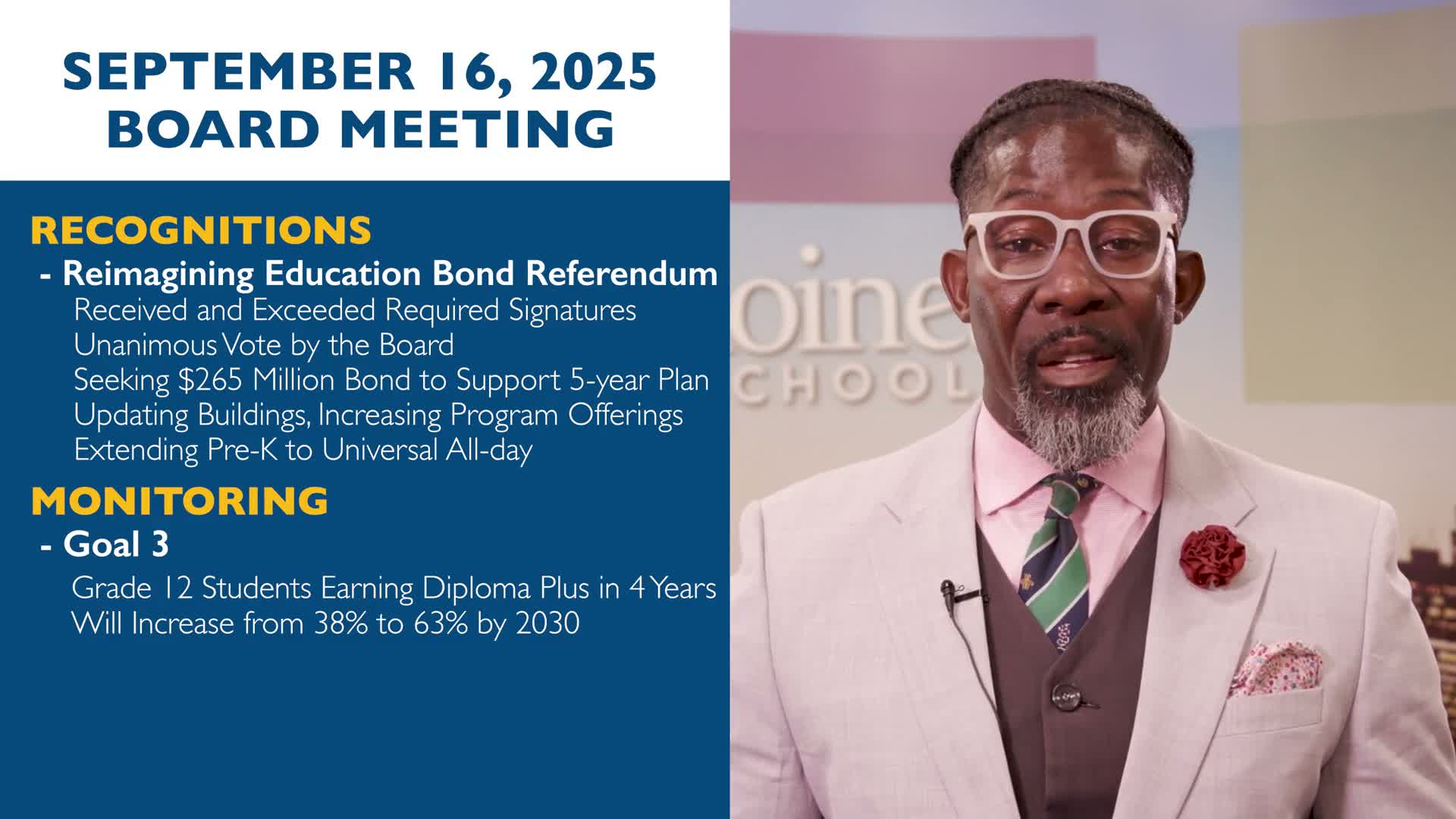 The recap noted the board has the assessment results but did not make a public release of the full scores during the segment. The district did not provide numerical proficiency percentages, subgroup breakdowns, or comparison to prior years beyond the growth statements in the recap.