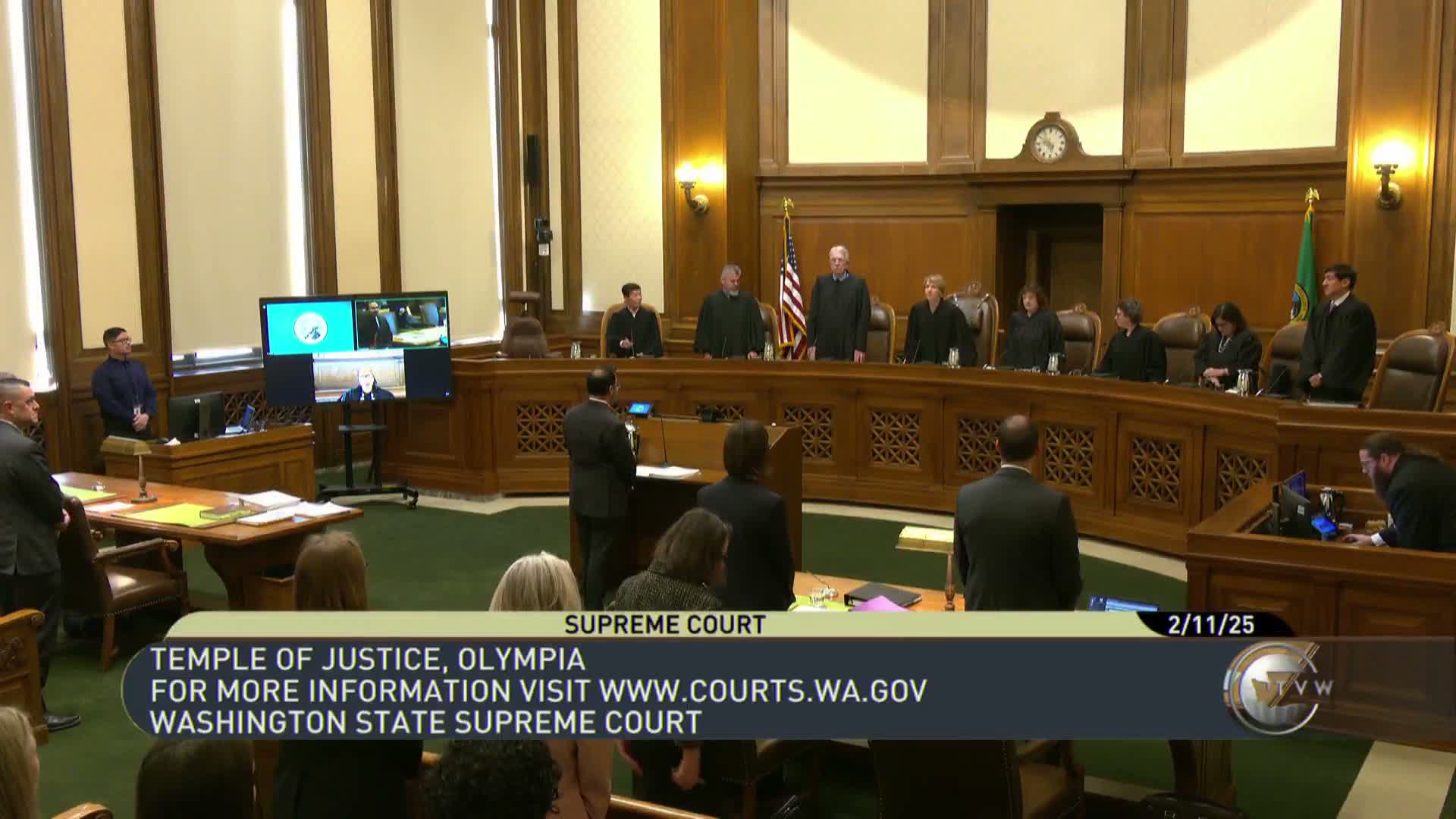 The Washington Supreme Court on oral argument considered whether the state's product-liability law (WPLA) and its 12-year statute of repose apply to claims tied to manufacturing conduct in other states, and whether punitive damages can be grafted onto a WPLA claim; counsel for both sides clashed over choice-of-law precedents and the statute's legislative record.