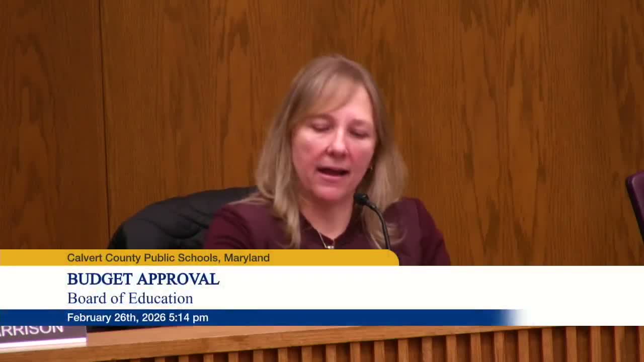 The board's unanimous vote (5-0) approves the proposed FY27 budget as the board's submission to the Calvert County commissioners; the county hearing was scheduled the following day and final county action could require further discussion and votes if amounts change.