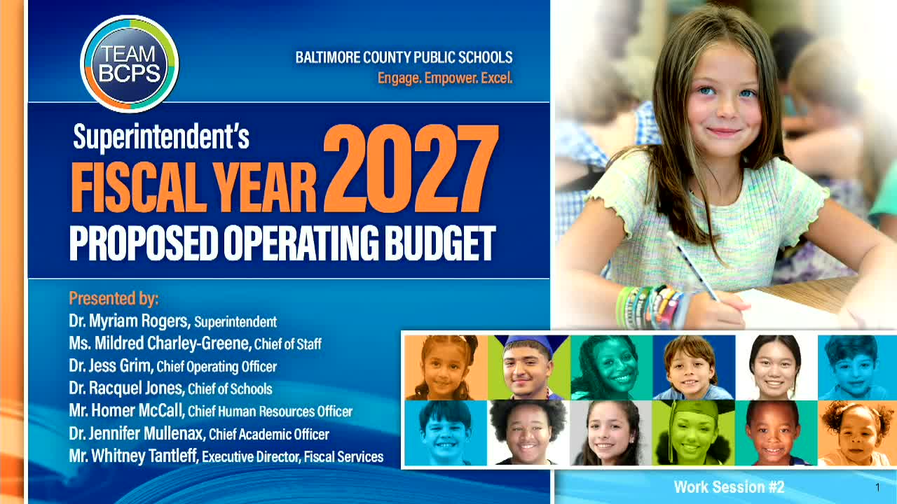 Baltimore County Public Schools presented work session #2 on the proposed FY2027 operating budget on Feb. 10, emphasizing fiscal pressures from declining enrollment, higher wages and mandated special-education services.