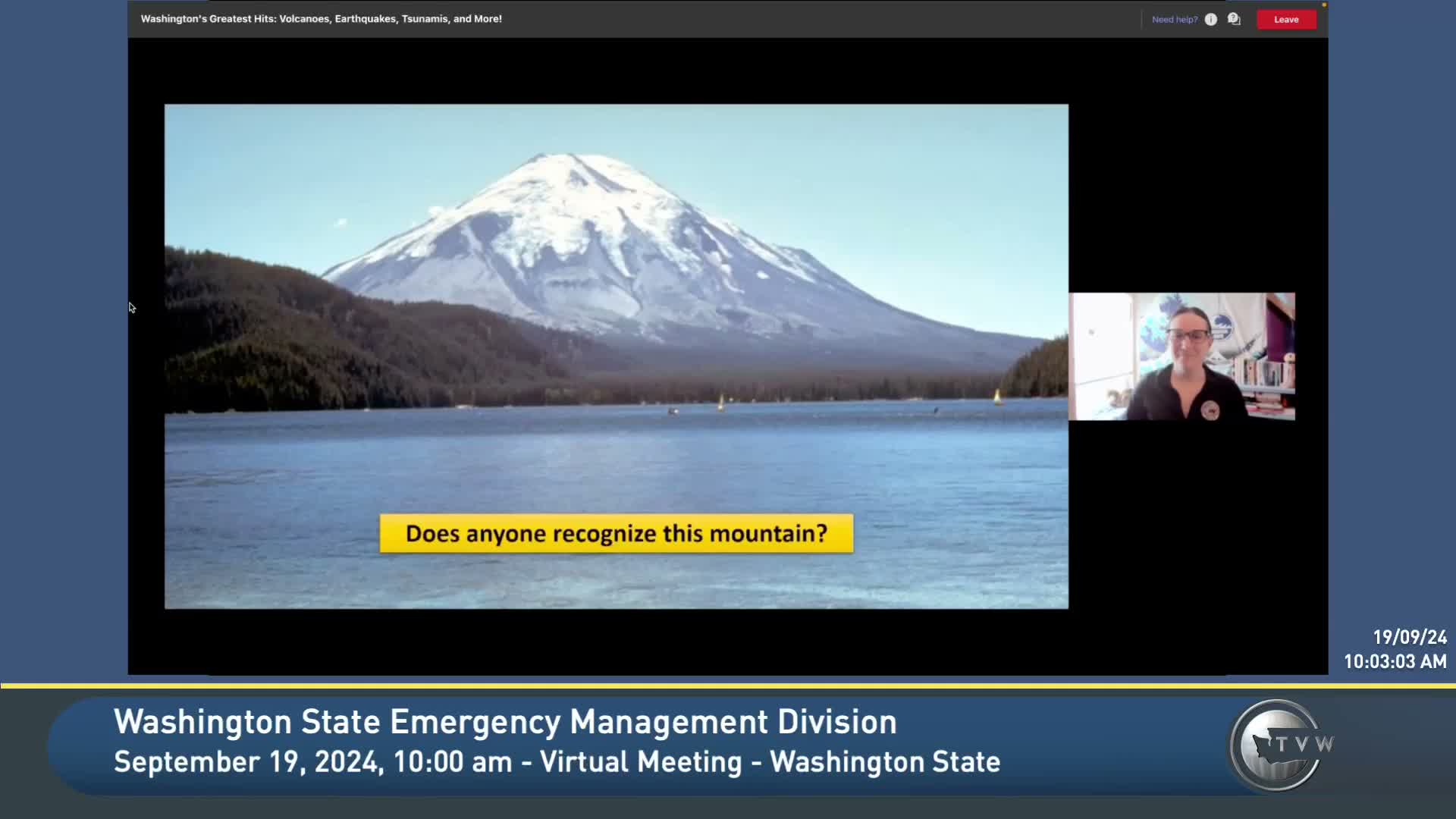 Brian Turbusch, earthquake and volcano program manager for the Washington Emergency Management Division, opened the webinar’s volcano segment by reminding listeners that "Washington has 5 active volcanoes" and by citing Mount St. Helens' 1980 eruption as an example of how dramatically a volcano can change the landscape.