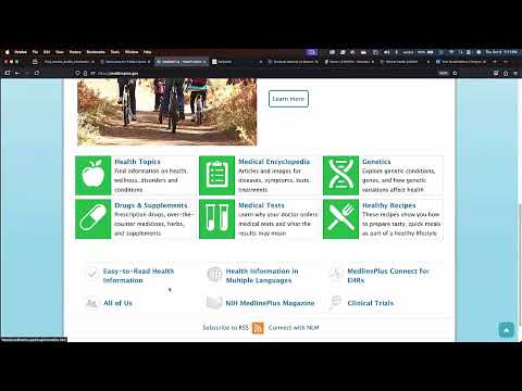 In a live demo Barrett walked through the NNLM LibGuide’s behavioral-and-mental-health tab, then focused on MedlinePlus (an NLM patient-facing resource). He showed the site’s "Start Here" guidance, the medical-encyclopedia box, and the ‘Español’ toggle that converts the site to Spanish. Barrett pointed out MedlinePlus patient handouts — printable PDFs often available side-by-side in English and another language — and noted links from topic pages to PubMed when deeper research is needed.