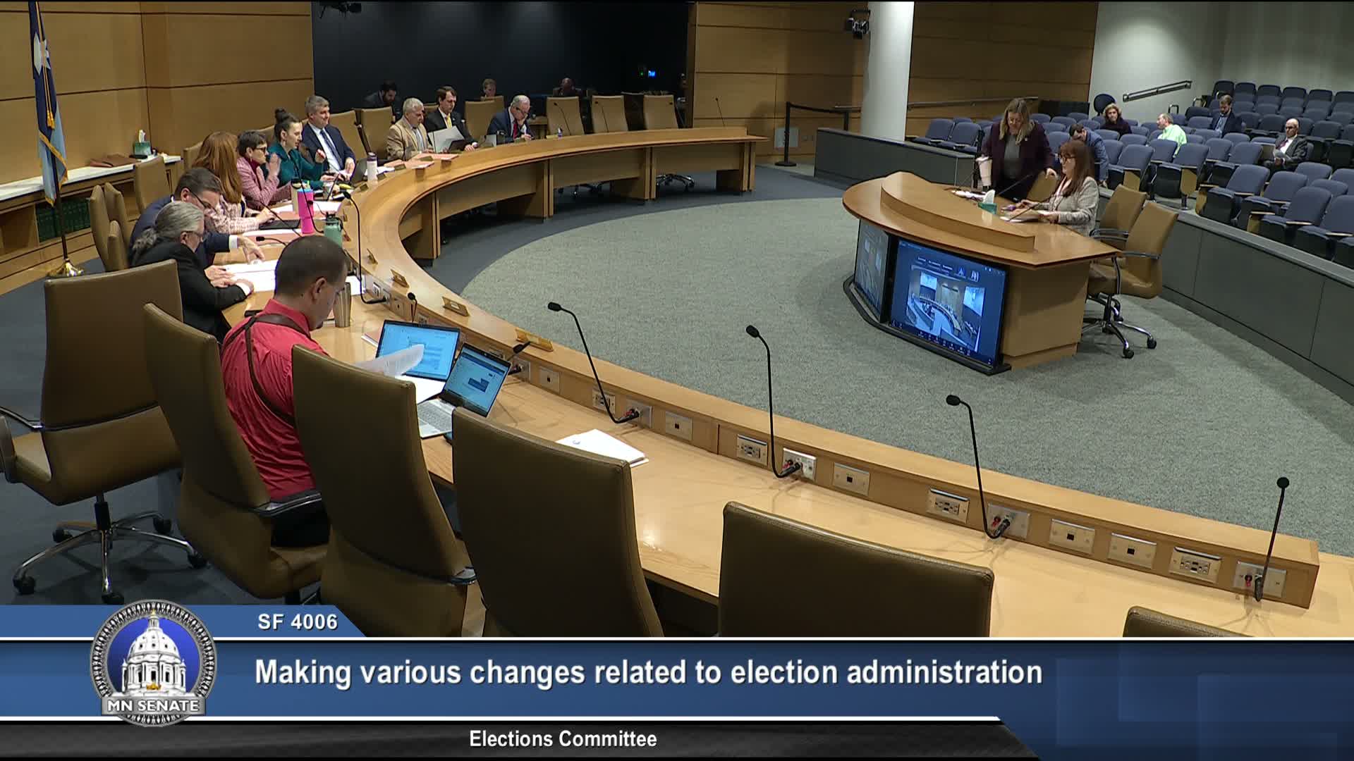 Senate File 4006, the secretary of state's administrative bill, would give local officials flexibility on absentee voting access, standardize use of the statewide voter registration system, and create reimbursement procedures for special elections; amendments to limit vouching and require physical addresses failed on roll calls, and the bill was laid over for possible omnibus inclusion.