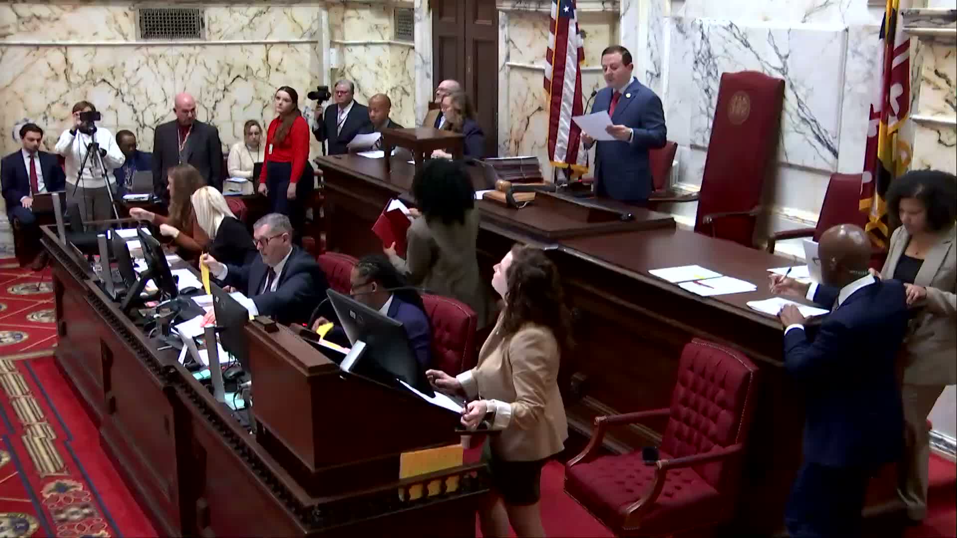 Senate Bill 11, a departmental bill from the State Board of Elections, drew focused floor discussion on March 3 as senators considered a committee report and two committee amendments intended to make public financing for governor/lieutenant governor tickets more usable.