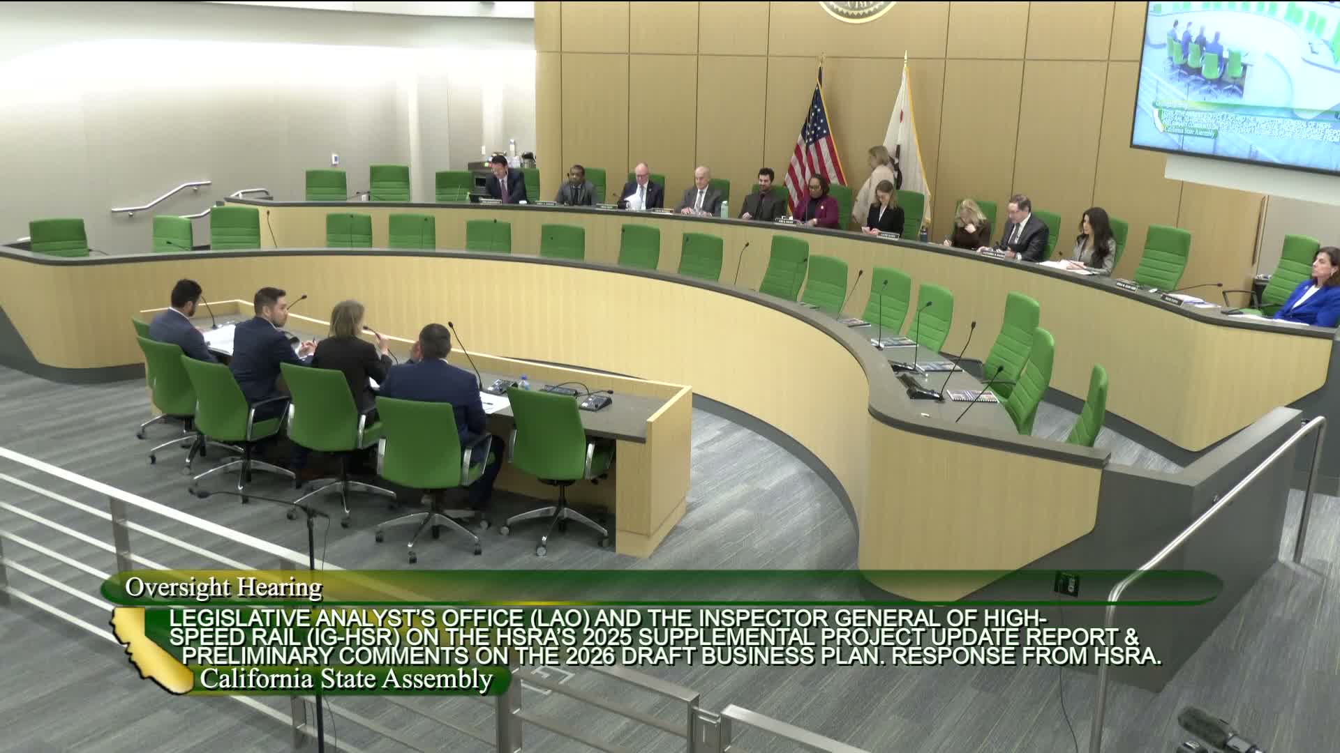 Legislators heard from the LAO and the HSRA inspector general that the authority’s 2026 draft business plan leaves a near‑term cash‑flow gap, depends on statutory changes and assumed savings, and lacks a timing‑based funding schedule; HSRA says it can complete Merced‑to‑Bakersfield with current funding assumptions but acknowledges cash‑flow risks and pursuit of private partners.